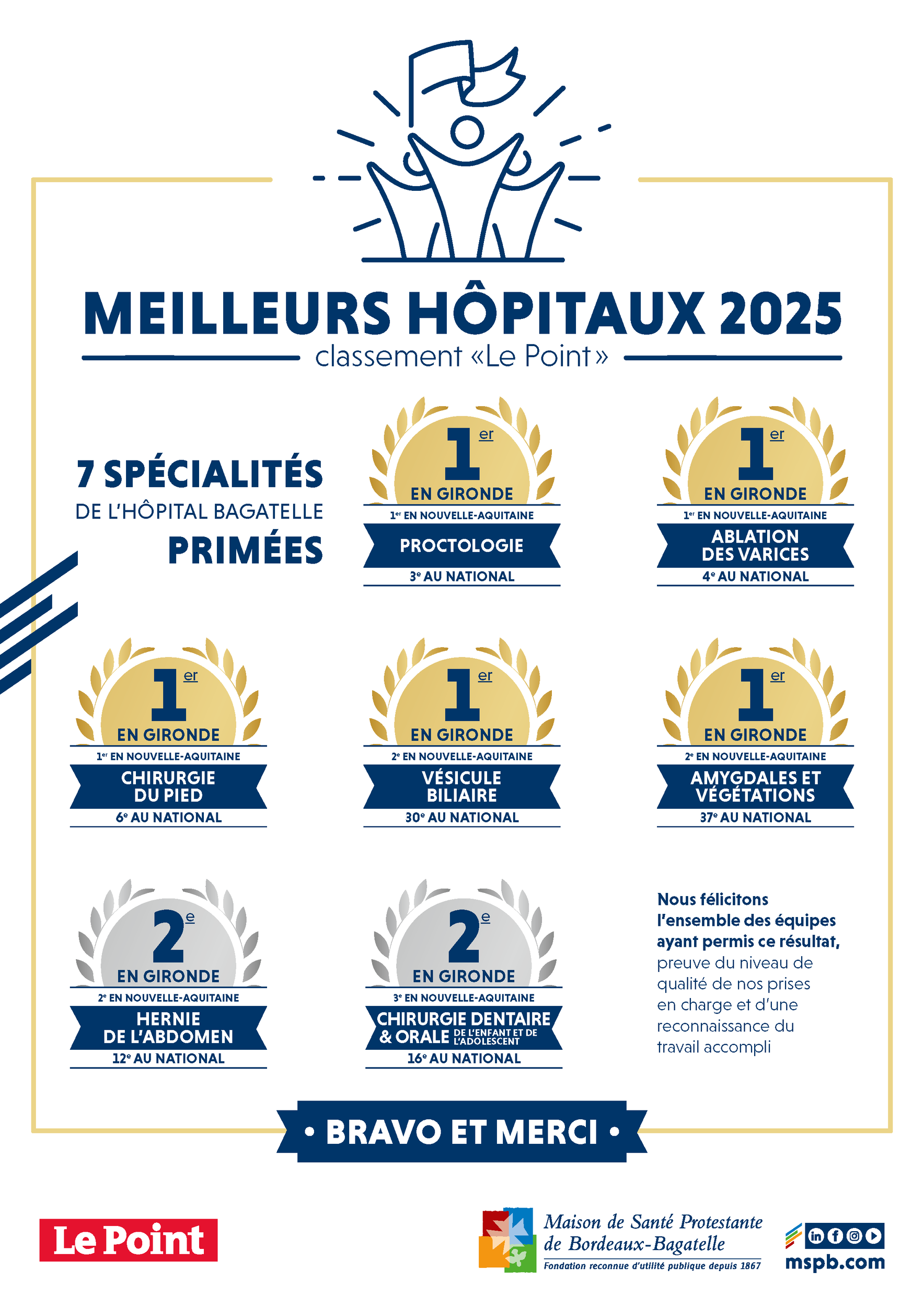 Ils viennent consolider notre ambition : continuer à être une référence en santé sur le territoire, un hôpital ouvert à tous sans dépassement d’honoraires, portée par l’engagement de tous nos professionnels.