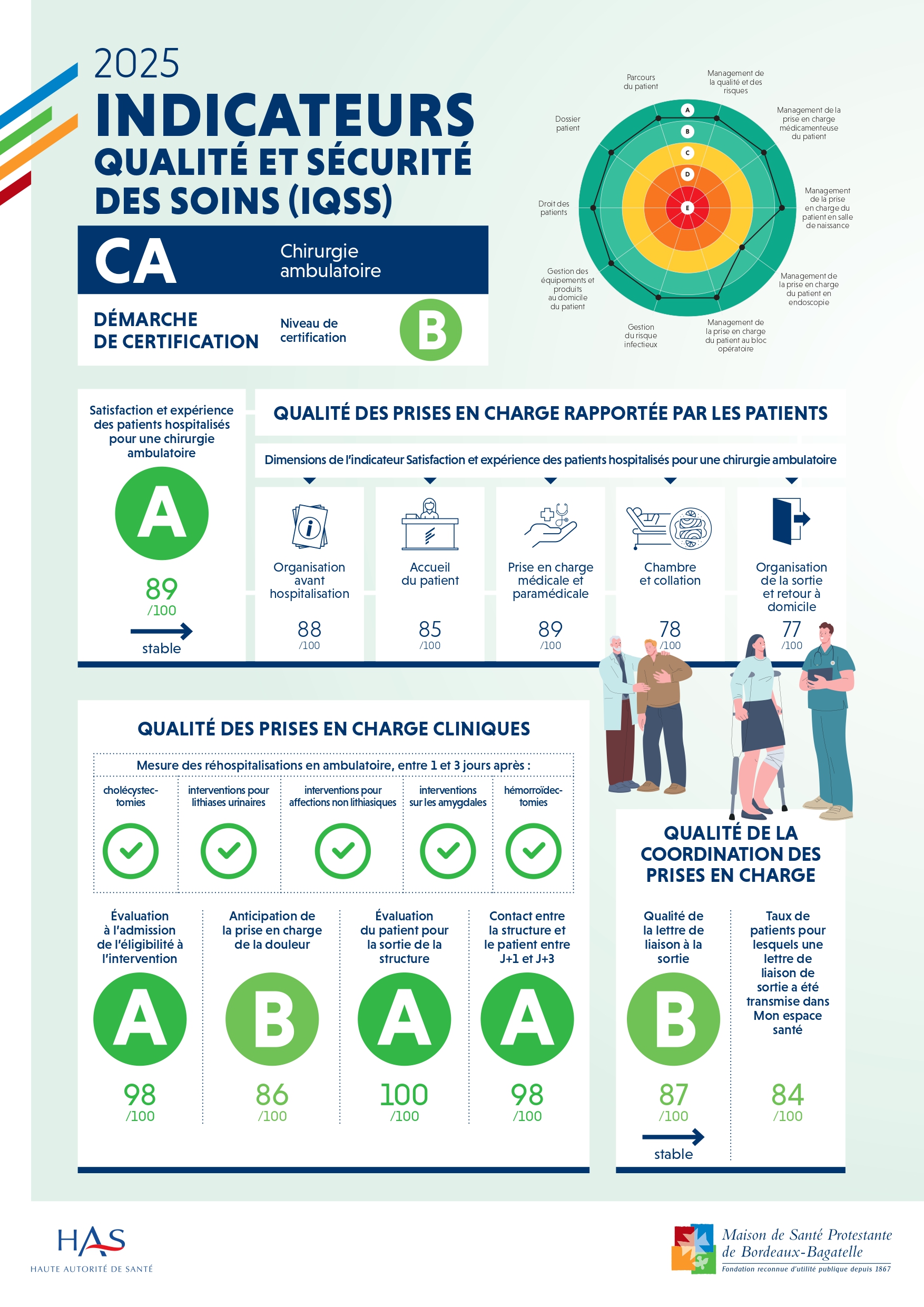L’Hôpital Bagatelle a été certifié en 2019. Retrouver le rapport en cliquant ici.
